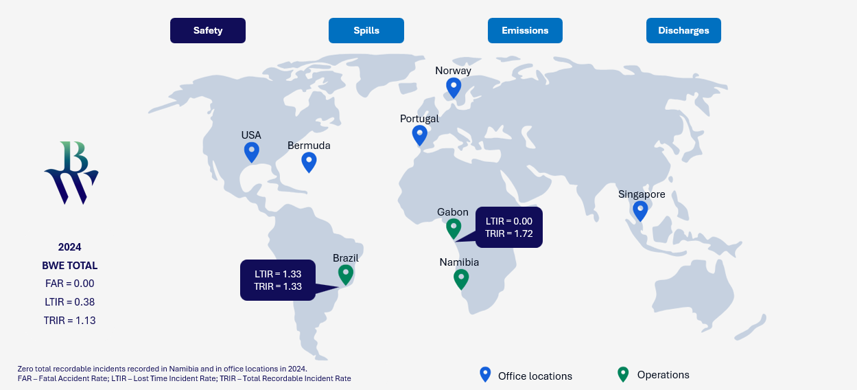 BW Energy continuously monitors key performance indicators, covering Process and Occupational Safety, Environment, and Asset Integrity, to proactively identify and mitigate potential risks.